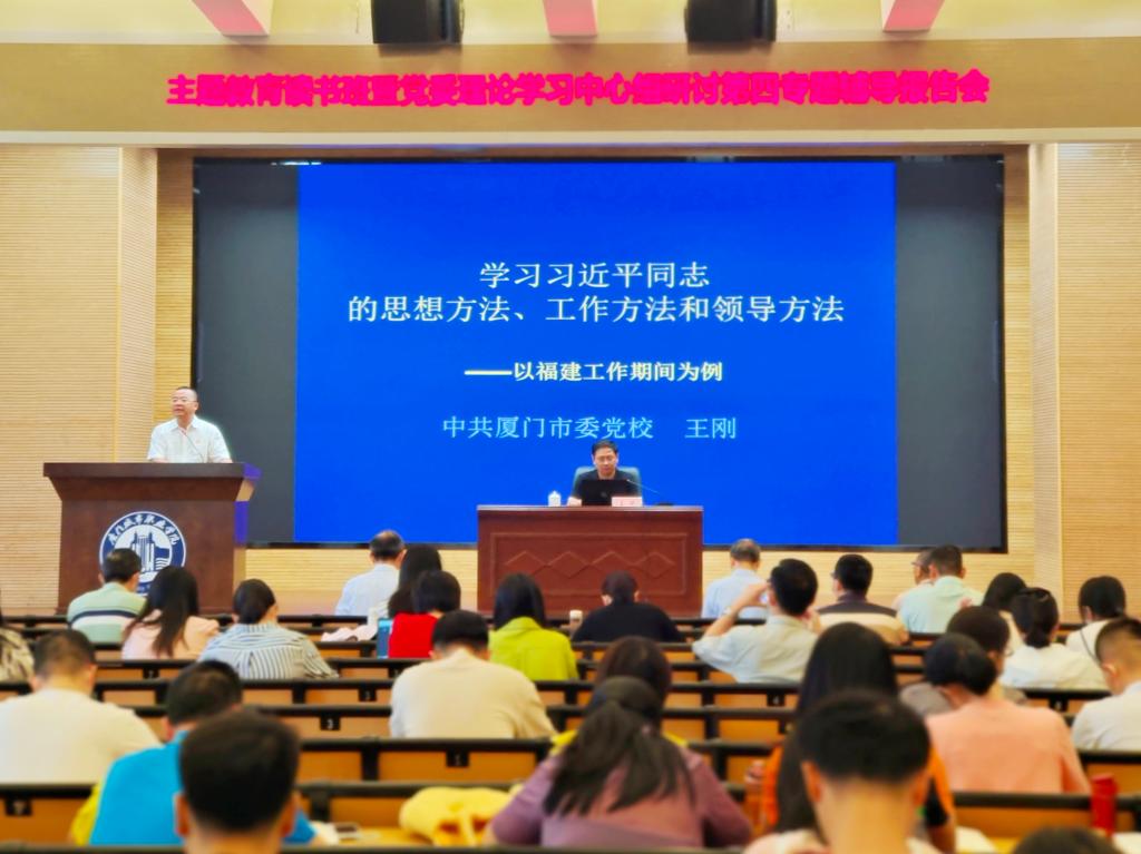 5月16日上午,我校在会议一召开主题教育读书班暨党委理论学习中心组研讨第四专题辅导报告会。报告会邀请厦门市委党校科研与决策咨询处处长王刚副教授作《学习习近平的思想方法、工作方法和领导方法——以在福建工作为例》专题辅导报告。校党政班子成员、处级干部、全体党员参加,报告会由校党委书记蒋先立主持。