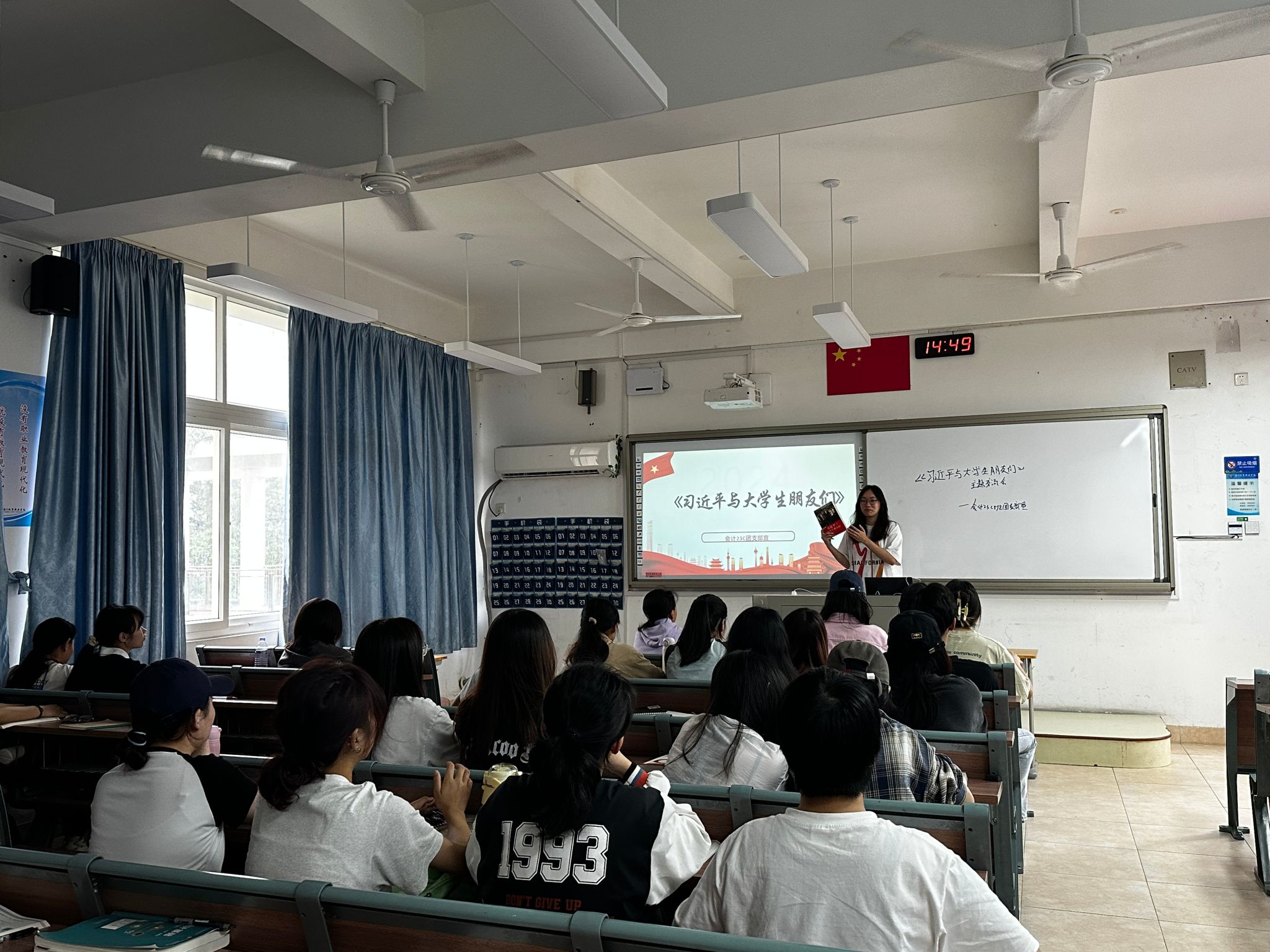 6月17日下午,财经商贸学院分团委开展《习近平与大学生朋友们》第二卷专题读书会。分团委书记林燕菁以《为中国式现代化挺膺担当》为题,为现场学生上了一堂生动的团课,从内容、时空、实践三重向度系统讲述习近平总书记对大学生们的关注、关心和关爱。