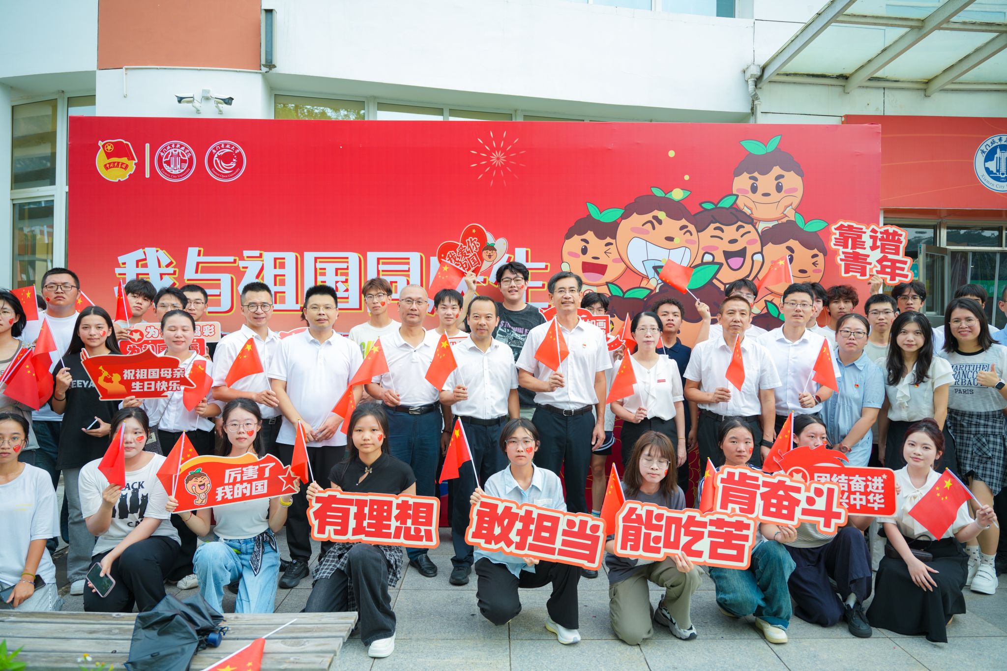 为庆祝中华人民共和国成立76周年,10月1日上午,我校在北校区云顶楼前广场举行“国旗飘扬迎华诞,青春奔跑致祖国”主题系列活动。校党委副书记王育培,宣传部、教务处、学工处、保卫处、团委等部门负责人,各党总支负责人、辅导员以及近两百名青年学生在国旗下集合,以崇高的敬意和蓬勃的朝气向伟大祖国致以诚挚祝福。